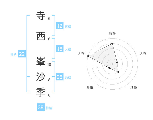 寺西 峯沙季さんの外格は22画の1点!