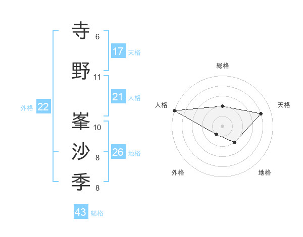 寺野 峯沙季さんの外格は22画の1点!
