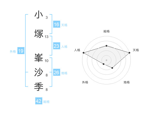 小塚 峯沙季さんを姓名の画数から五運を鑑定