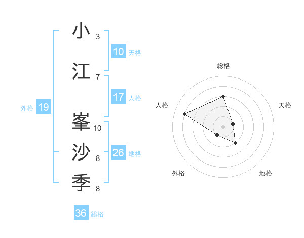 小江 峯沙季さんの外格は19画の1点!