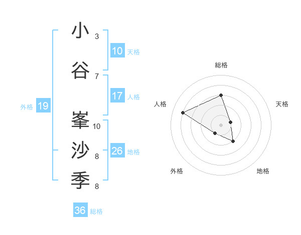 小谷 峯沙季さんの総格は36画の3点!