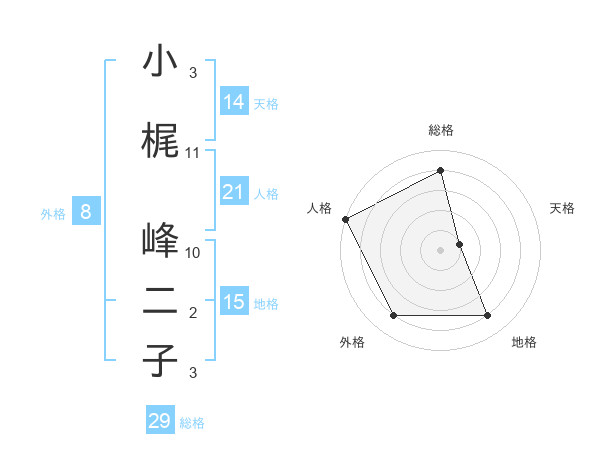 小梶 峰二子さんの総格は29画の4点!