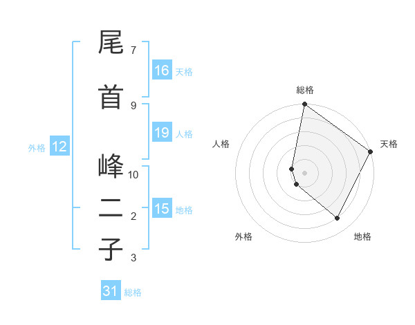 尾首 峰二子さんを姓名の画数から五運を鑑定