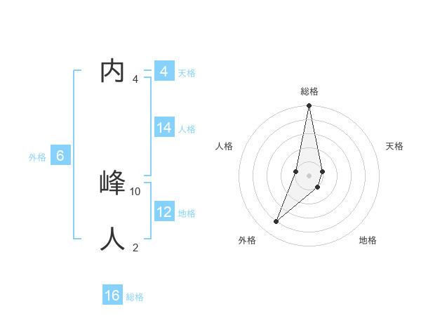 内 峰人さんの総格は16画の5点