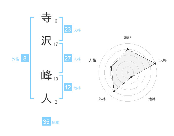 寺沢 峰人さんを姓名の画数から五運を鑑定