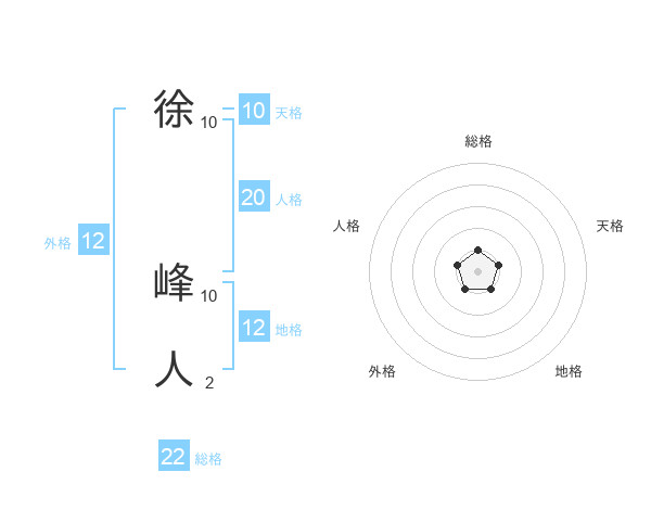 徐 峰人さんの総格は22画の1点!