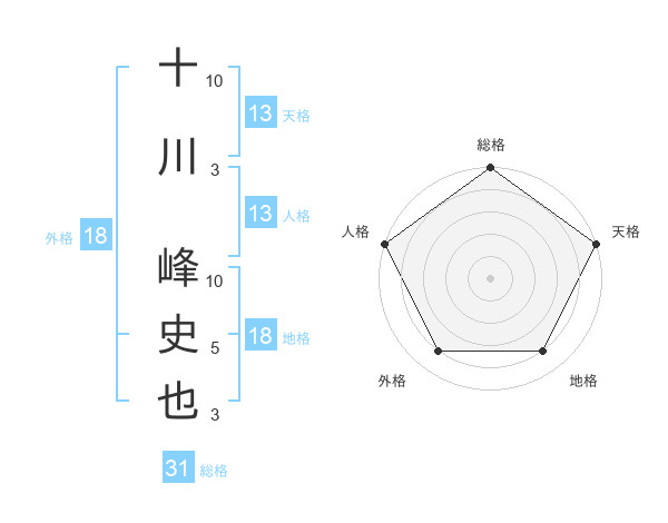 十川 峰史也さんの天格は13画の5点!