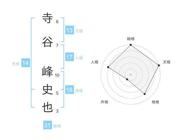 寺谷 峰史也さんの総格は31画の5点!