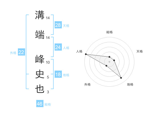 溝端 峰史也さんの総格は46画の1点!