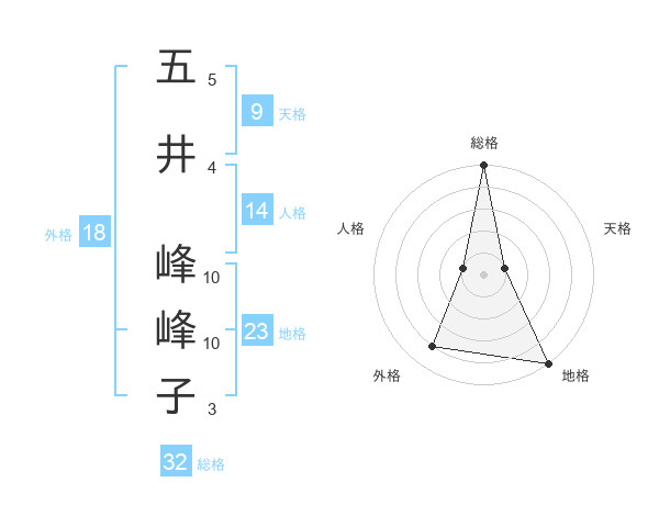 五井 峰峰子さんの総格は32画の5点!