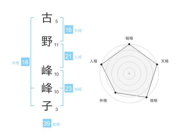 古野 峰峰子さんを姓名の画数から五運を鑑定