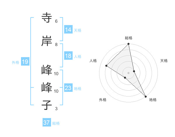 寺岸 峰峰子さんを姓名の画数から五運を鑑定