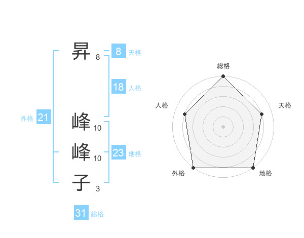 昇 峰峰子さんを姓名の画数から五運を鑑定