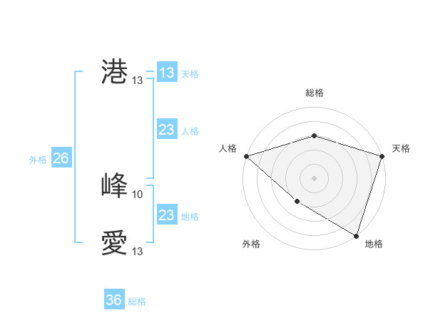港 峰愛さんの天格は13画の5点!