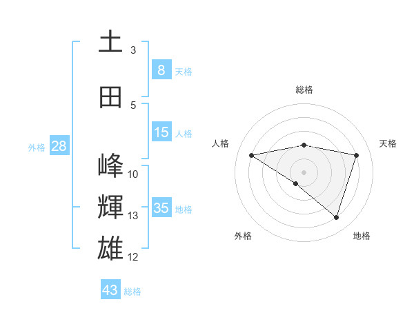 土田 峰輝雄さんの総格は43画の2点!