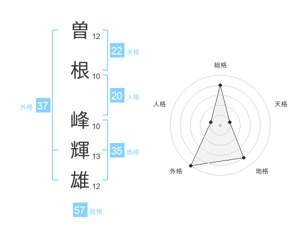 曽根 峰輝雄さんを姓名の画数から五運を鑑定