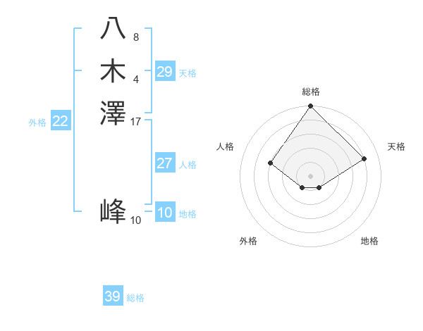 八木澤 峰さんの総格は39画の5点!