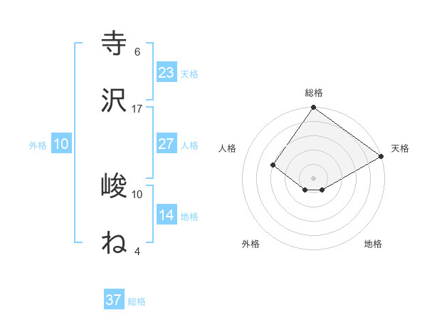 寺沢 峻ねさんの天格は23画の5点!