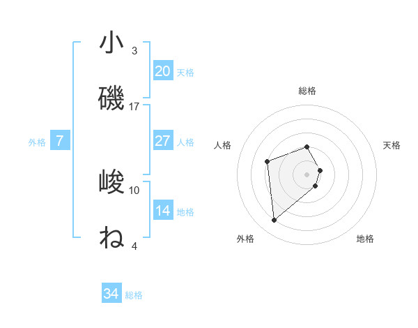 小磯 峻ねさんを姓名の画数から五運を鑑定