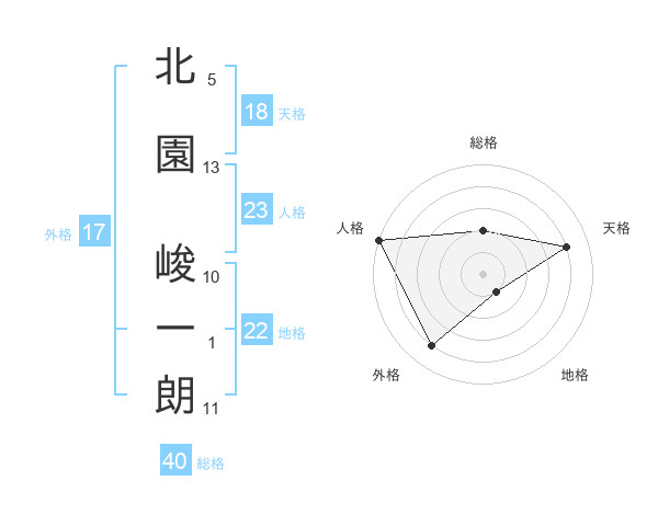 北園 峻一朗さんを姓名の画数から五運を鑑定