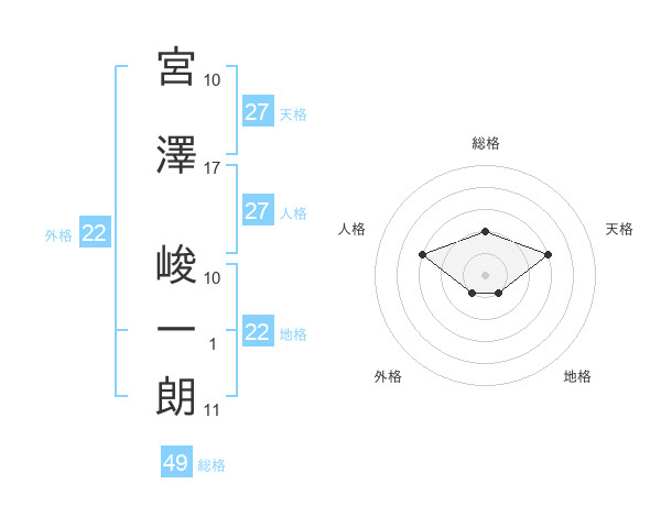 宮澤 峻一朗さんの外格は22画の1点!