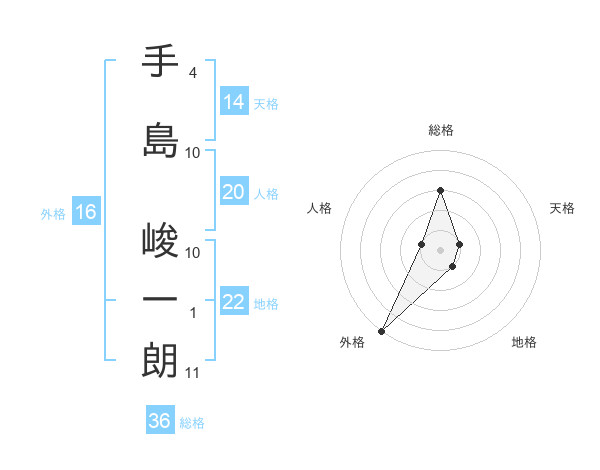 手島 峻一朗さんの地格は22画の1点!