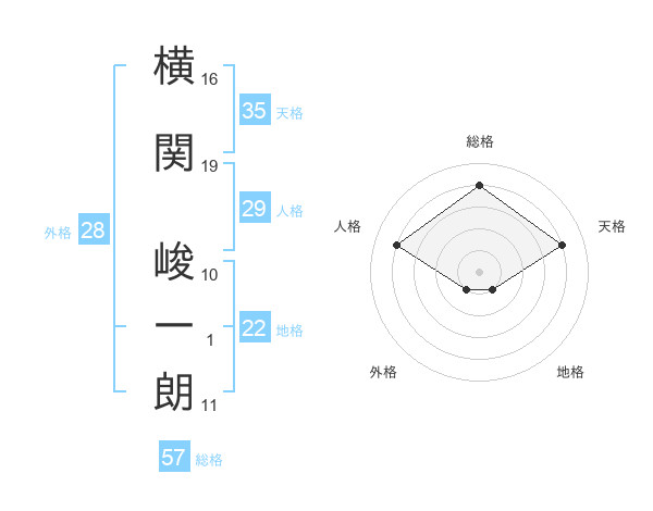 横関 峻一朗さんを姓名の画数から五運を鑑定