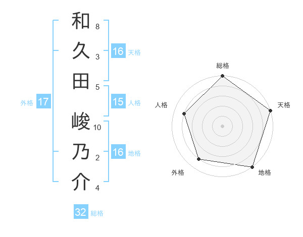 和久田 峻乃介さんを姓名の画数から五運を鑑定