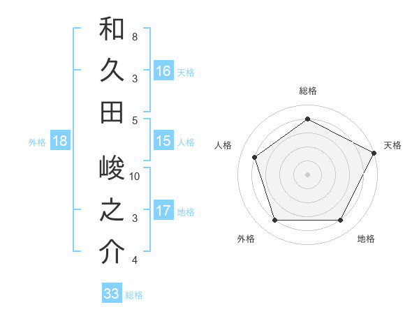 和久田 峻之介さんを姓名の画数から五運を鑑定