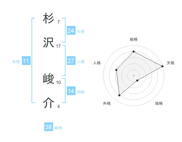 杉沢 峻介さんの天格は24画の5点!