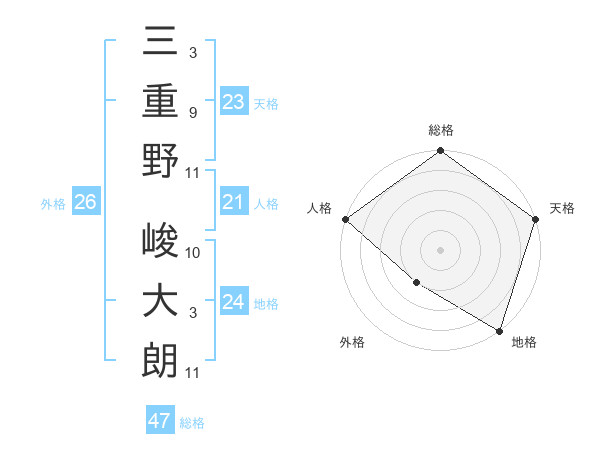 三重野 峻大朗さんを姓名の画数から五運を鑑定