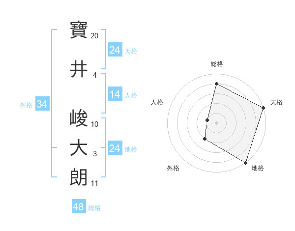 寶井 峻大朗さんを姓名の画数から五運を鑑定