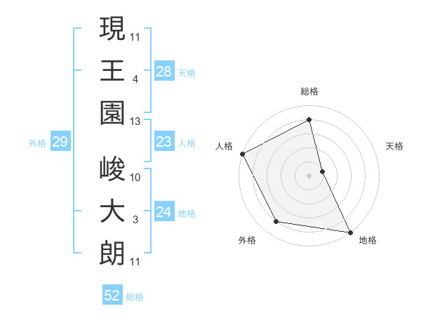 現王園 峻大朗さんを姓名の画数から五運を鑑定