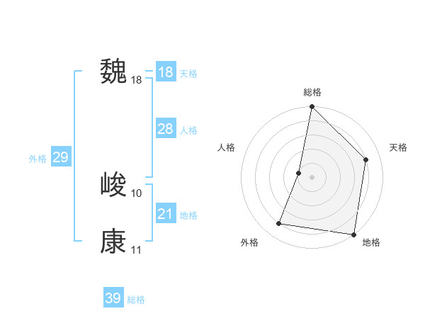 魏 峻康さんの総格は39画の5点!