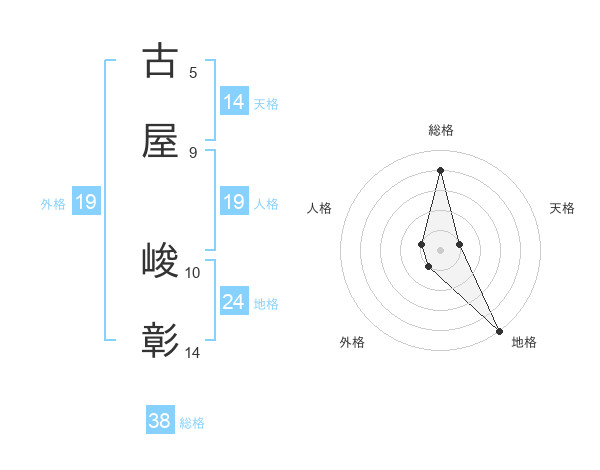 古屋 峻彰さんを姓名の画数から五運を鑑定