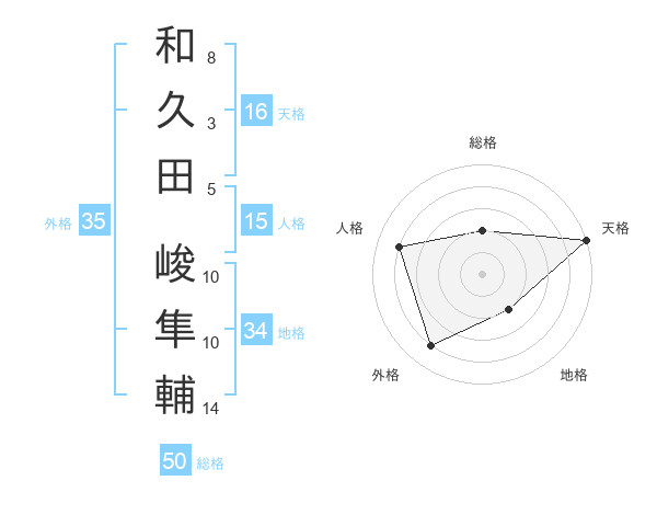 和久田 峻隼輔さんの総格は50画の2点!