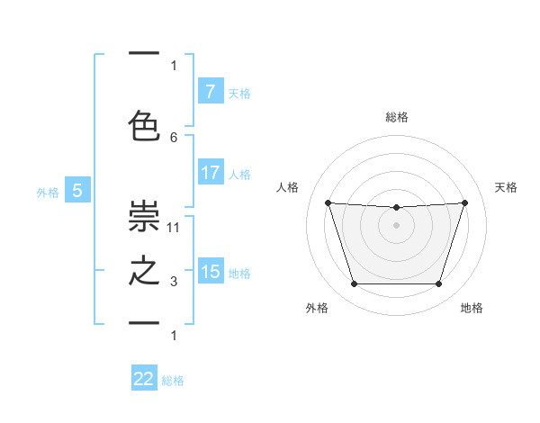 一色 崇之一さんの総格は22画の1点!