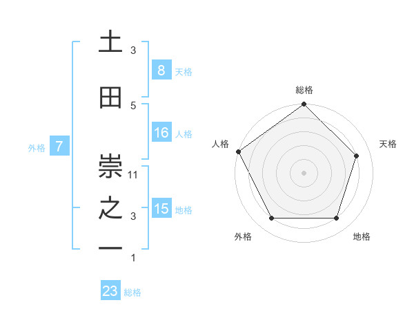 土田 崇之一さんを姓名の画数から五運を鑑定