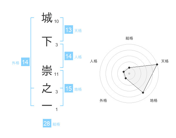城下 崇之一さんを姓名の画数から五運を鑑定