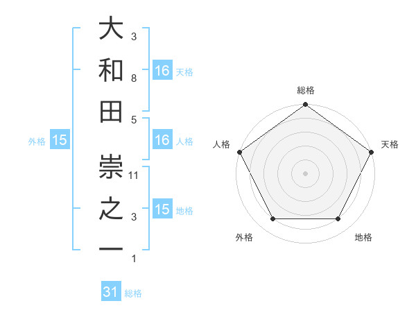 大和田 崇之一さんを姓名の画数から五運を鑑定