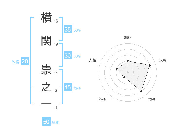 横関 崇之一さんを姓名の画数から五運を鑑定