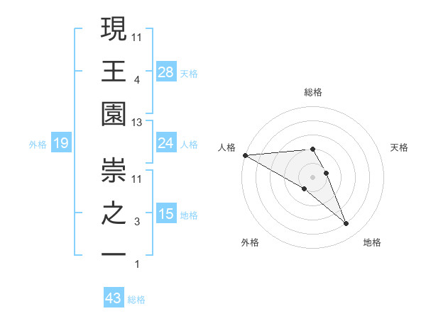 現王園 崇之一さんを姓名の画数から五運を鑑定