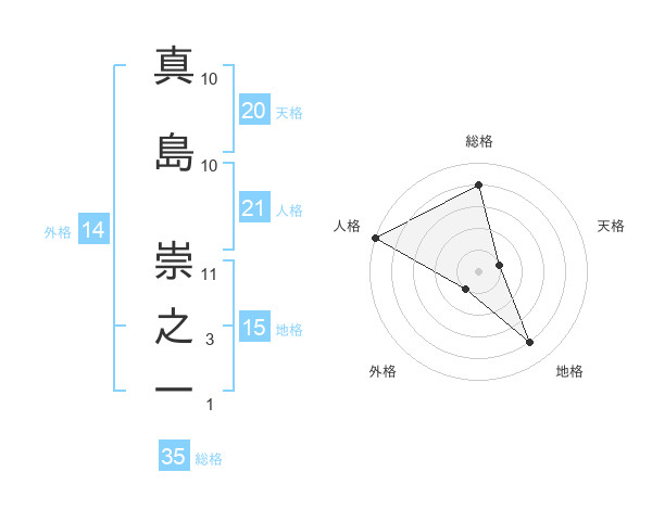 真島 崇之一さんの総格は35画の4点!
