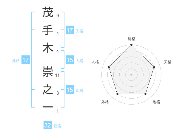茂手木 崇之一さんを姓名の画数から五運を鑑定