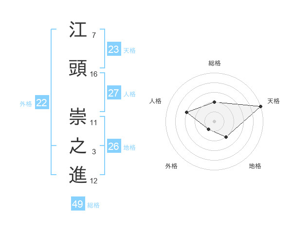 江頭 崇之進さんを姓名の画数から五運を鑑定