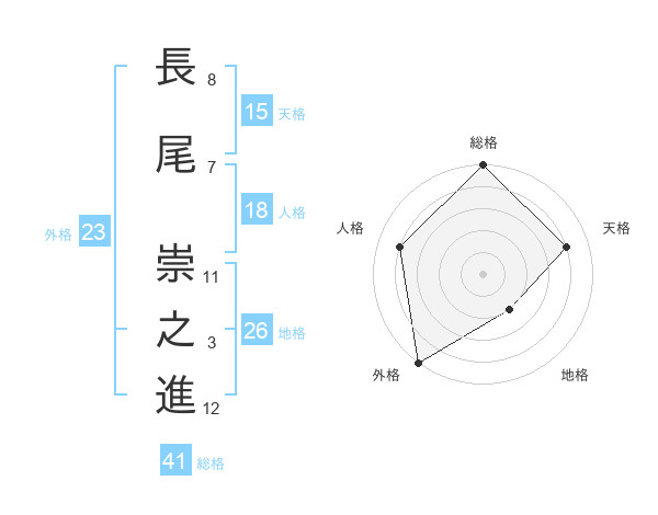 長尾 崇之進さんを姓名の画数から五運を鑑定