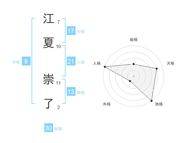 江夏 崇了さんの総格は30画の2点!