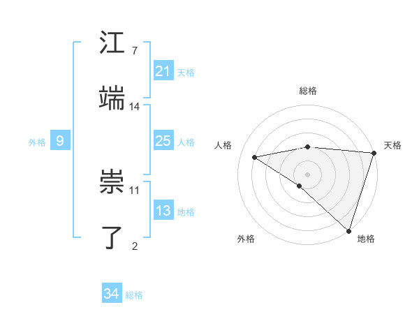 江端 崇了さんの天格は21画の5点!