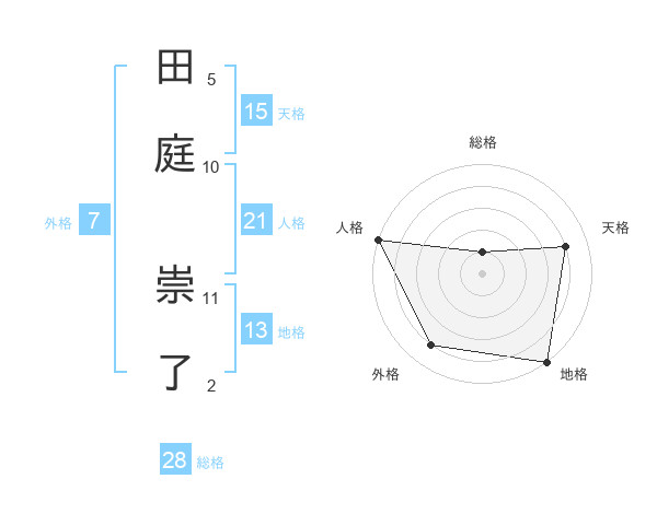 田庭 崇了さんの総格は28画の1点!