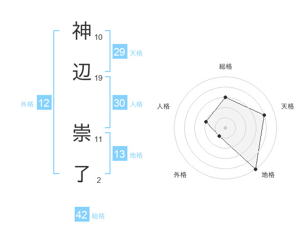 神辺 崇了さんの総格は42画の3点!